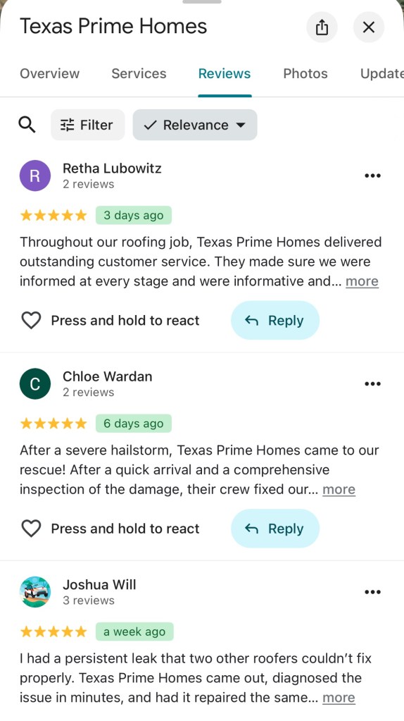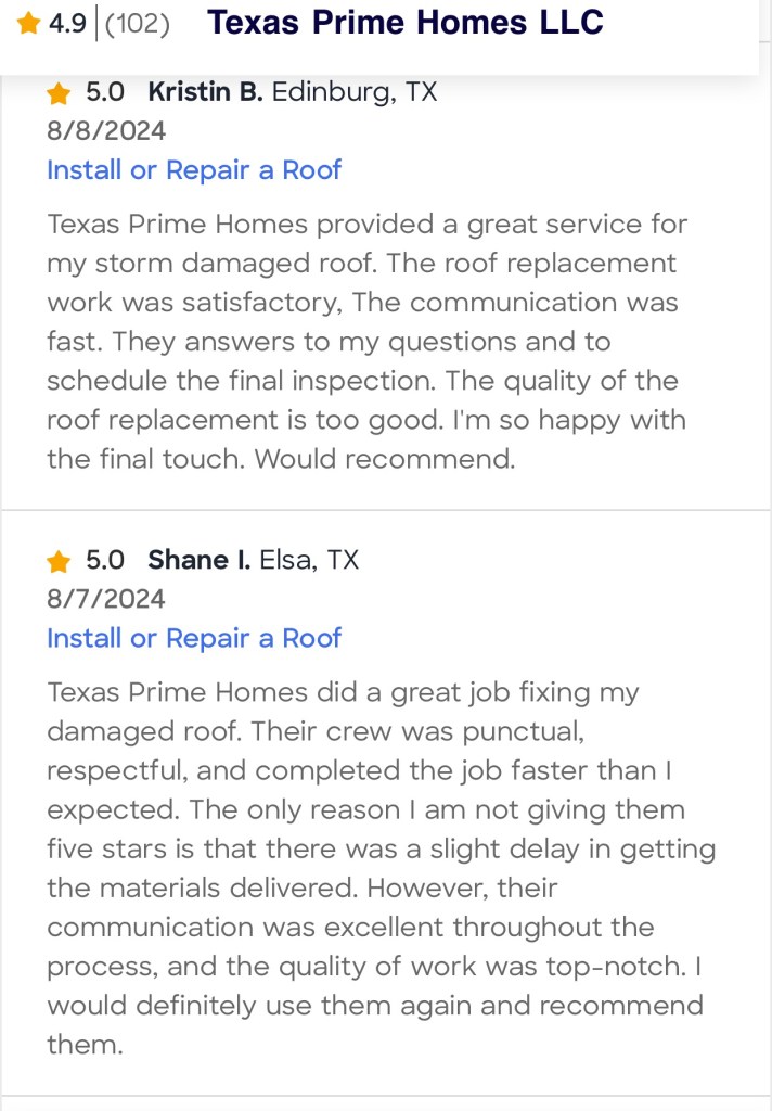 My roof was destroyed by a violent hailstorm, but Texas Prime Homes came to my rescue! They were prompt and professional from the very first call. Compared to other quotations I received, their staff completed the task in a matter of days after inspecting the damage and providing a thorough explanation. The staff was amiable, did a great job cleaning up, and even assisted with insurance paperwork. I’m so glad I didn’t have to handle the situation by myself.